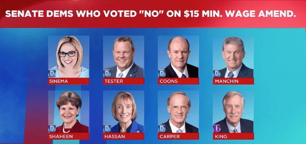 The seven Democratic Senators and the one Independent Senator who voted no on amending the coronavirus relief plan to include a $15 minimum wage.