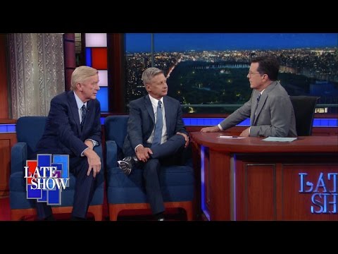 Former 2016 Libertarian presidential candidate Gary Johnson (center) prefers to wear sneakers with his suits.
