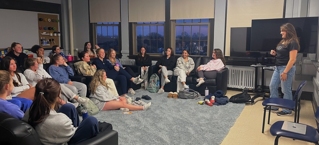Harootunian meets with the lacrosse team regularly to present on a variety of applicable and circumstantial topics such as communication, leadership and unity. The goal: building team chemistry and ensuring everyone feels like they have a voice.